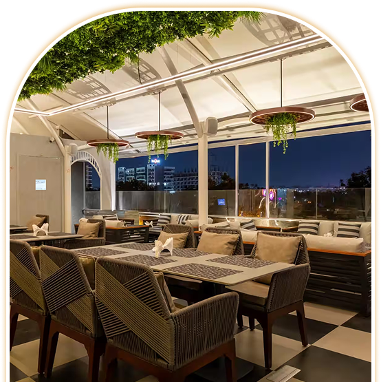 Situated in the heart of the city, our rooftop café combines the best of nature and modern design. With a perfect ambiance for any occasion, come and experience gourmet delights paired with a refreshing breeze. It's not just a café; it's an experience.